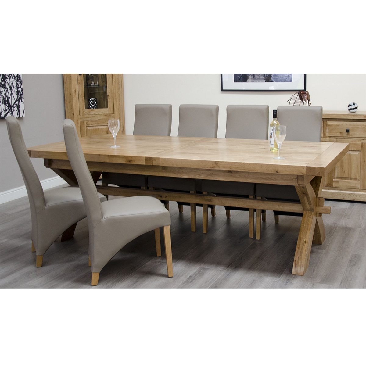 Deluxe Solid Oak Extending Dining Table 2.4m X-Leg – Statement Elegance