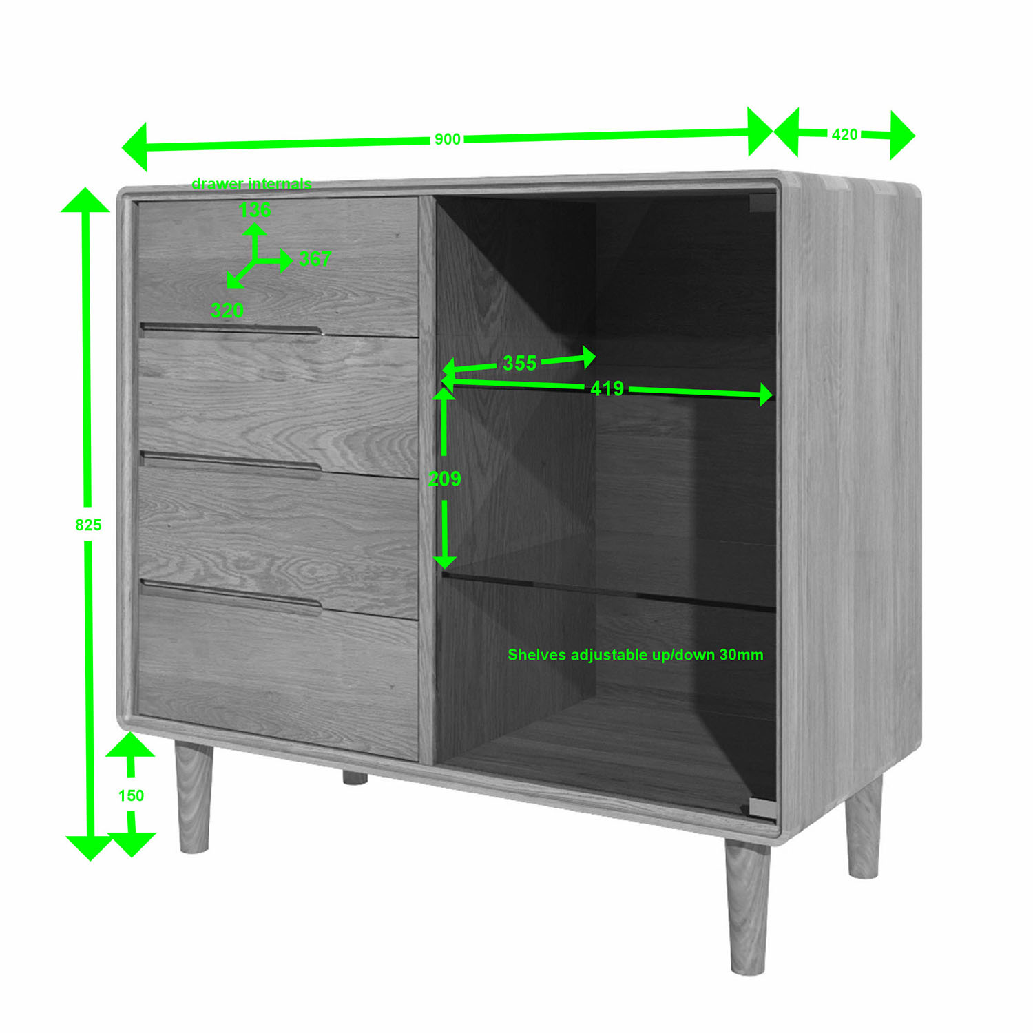 - Four Drawers – Ideal for organising tableware, paperwork, or household accessories