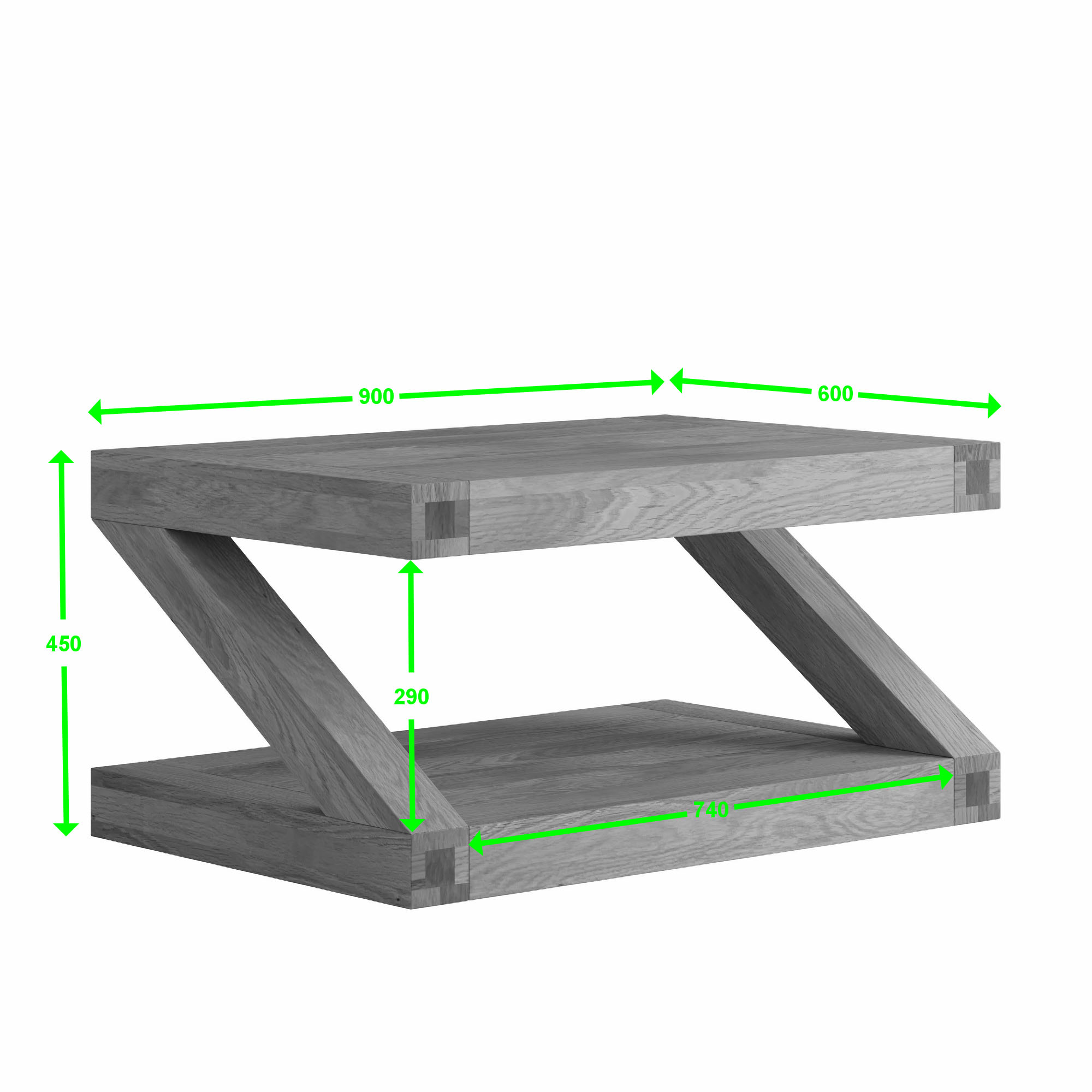 A: The Z Solid Oak Coffee Table measures H45cm x W60cm x D90cm, or approximately 3ft x 2ft, making it a practical centrepiece for most living rooms.